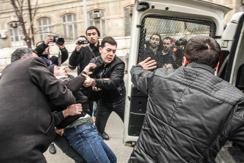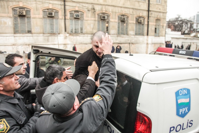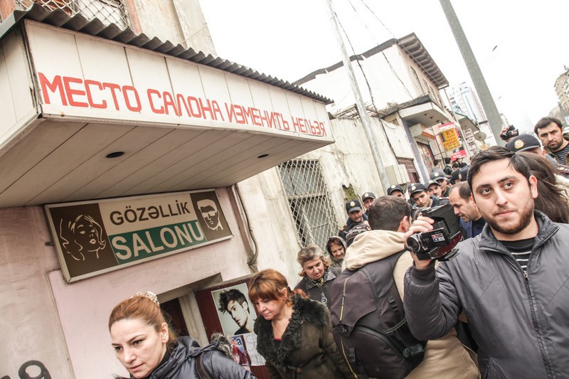 54. Полиция пресекла акцию протеста против сноса домов в центре Баку. Фоторепортаж корреспондента "Кавказского узла" Азиза Каримова от 3 марта 2014 года.