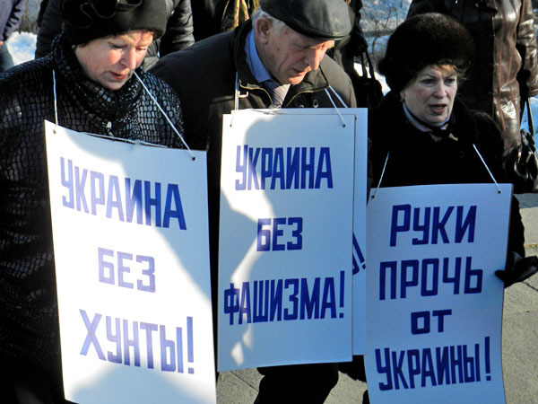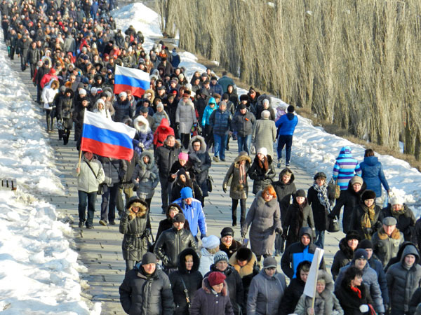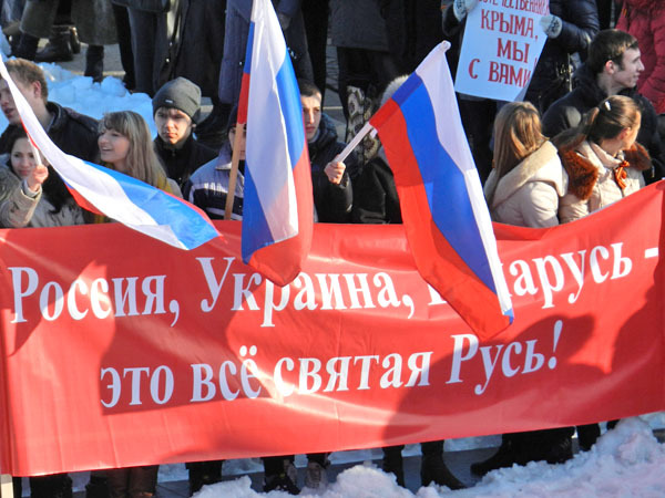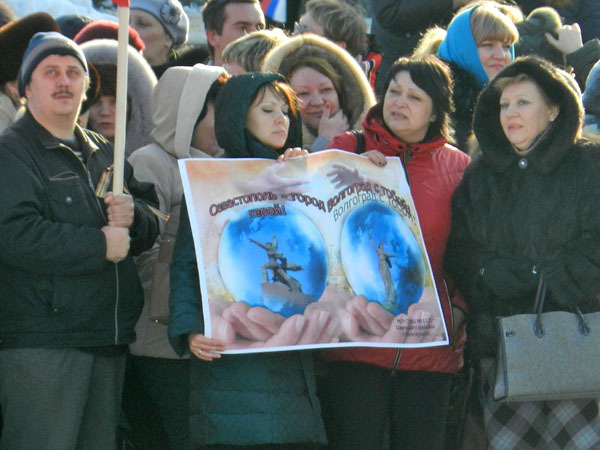 Митинг в поддержку русскоязычного населения, проживающего на территории Украины. Волгоград, 4 марта 2014 г. Фоторепортаж корреспондента "Кавказского узла" Татьяны Филимоновой