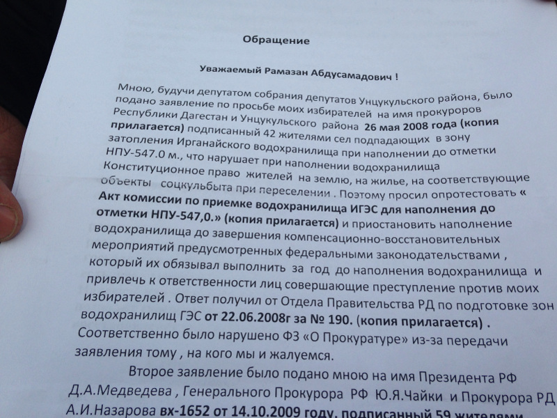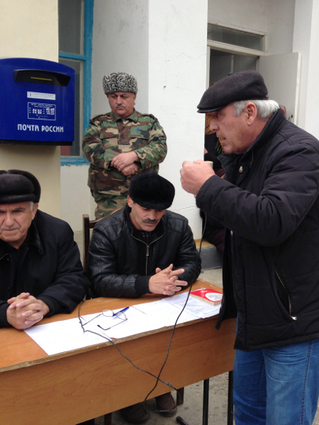 Собрание жителей Унцукульского района, требующих ускорить выплату компенсаций за затопленные земли, прошло в селе Ирганай. Фоторепортаж корреспондента "Кавказского узла" Патимат Махмудовой от 5 марта 2014 года.