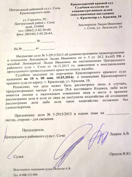 Суд в Краснодаре подтвердил законность штрафа в отношении 75-летней Лидии Лепсверидзе. Сочи, март 2014 г. Фоторепортаж корреспондента "Кавказского узла" Светланы Кравченко