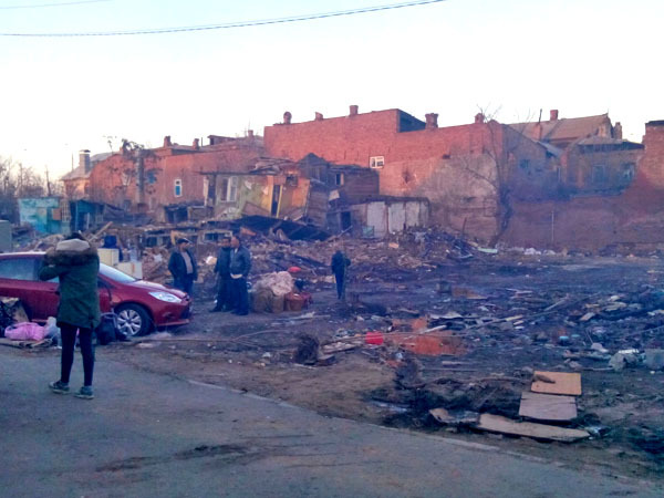 В результате крупного пожара сгорели шесть малоэтажных домов. Астрахань, 25 марта 2014 г. Фоторепортаж корреспондента "Кавказского узла" Елены Гребенюк