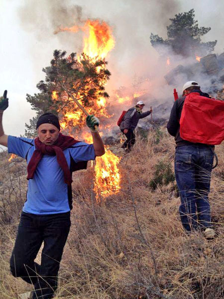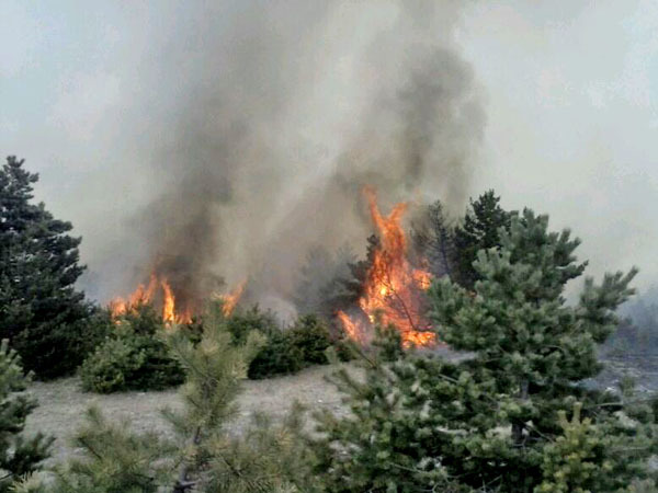 В Гумбетовском районе Дагестана уже неделю продолжает гореть лес. 25 марта 2014 г. Фото предоставлено очевидцем