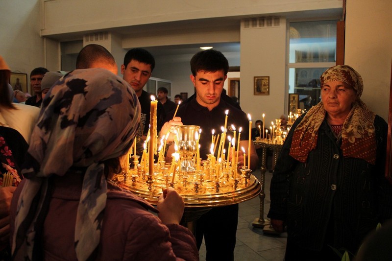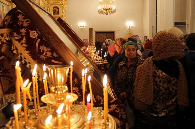 Пасхальное богослужение в Свято-Георгиевском соборе Владикавказа 19 апреля 2014 года. Фоторепортаж корреспондента "Кавказского узла" Эммы Марзоевой .