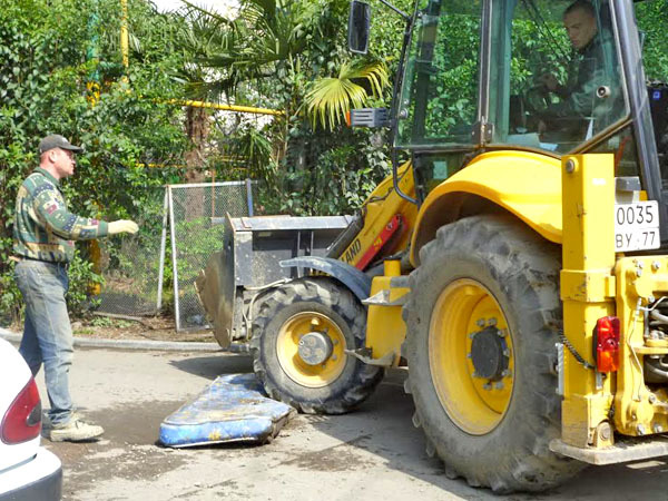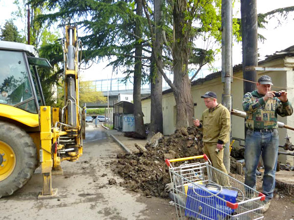 Жители улицы Новоселов требуют остановить работы по обустройству выезда из автошколы. Сочи, 18 апреля 2014 г. Фоторепортаж корреспондента "Кавказского узла" Светланы Кравченко
