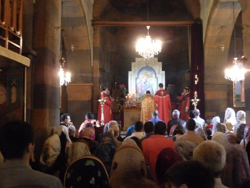 Верующие у церкви Сурб Зоравор в ожидании пасхальной службы.