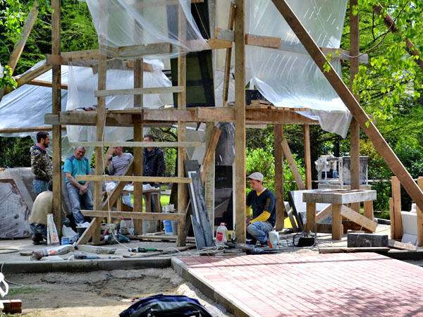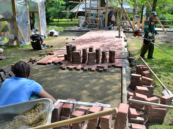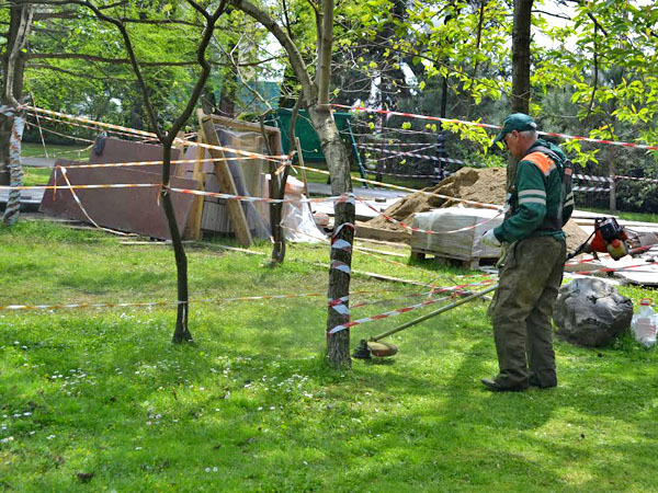 При возведении стелы в Комсомольском сквере Сочи строители нарушили правила благоустройства. Сочи, 23 апреля 2014 г. Фоторепортаж корреспондента "Кавказского узла" Светланы Кравченко