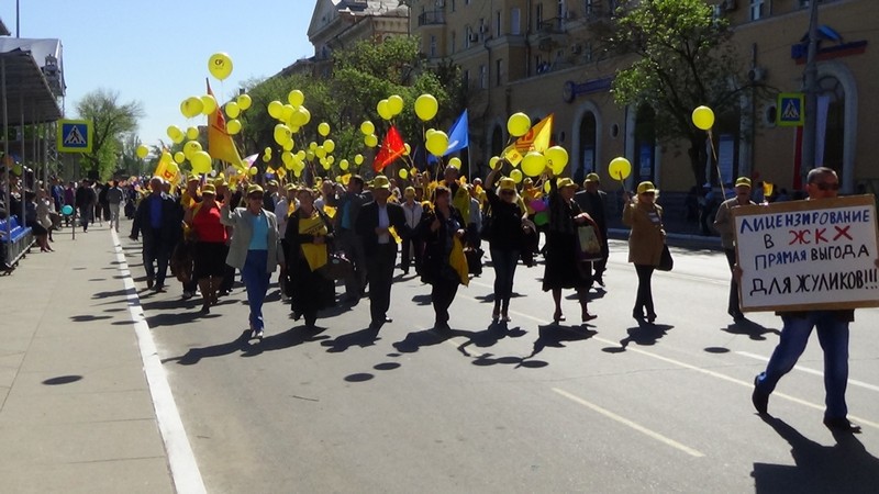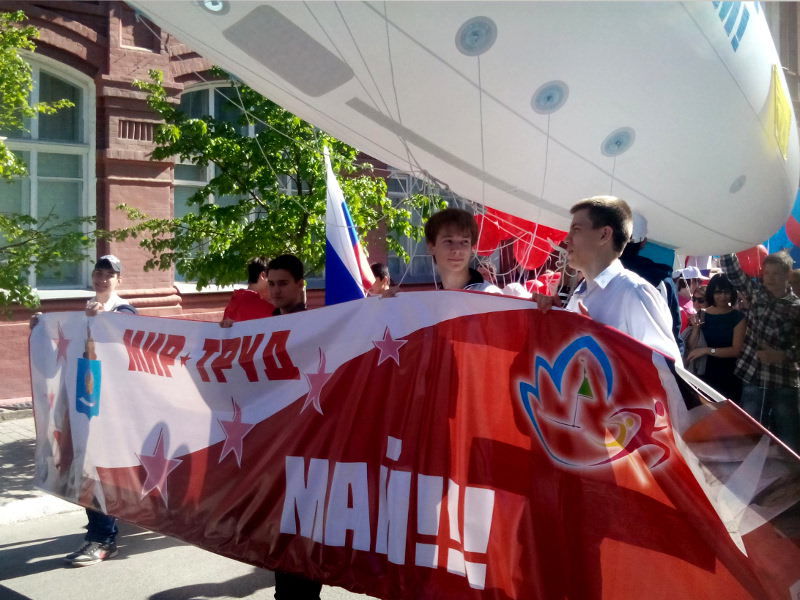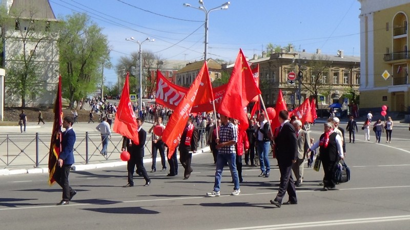 Первомайское шествие в Астрахани. Фоторепортаж корреспондента "Кавказского узла" Елены Гребенюк от 1 мая 2014 года.