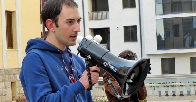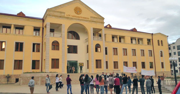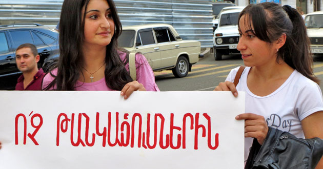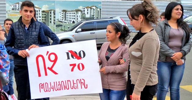 Акция против повышения тарифов на проезд в общественном транспорте Степанакерта. 29 сентября 2014 г. Фоторепортаж корреспондента "Кавказского узла" Алвард Григорян