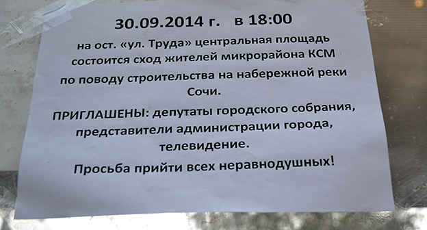 «Сход жителей микрорайона КСМ 30 сентября против застройки сквера на левом берегу реки Сочи». Фоторепортаж корреспондента "Кавказского узла" Светланы Кравченко