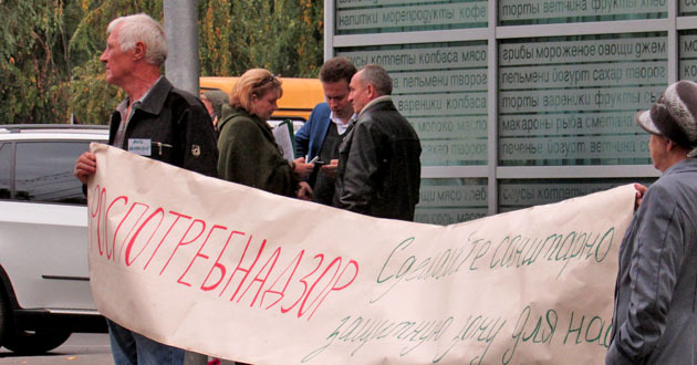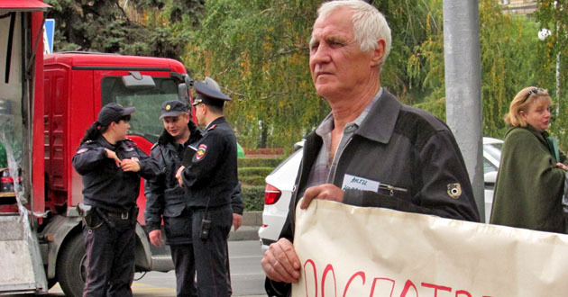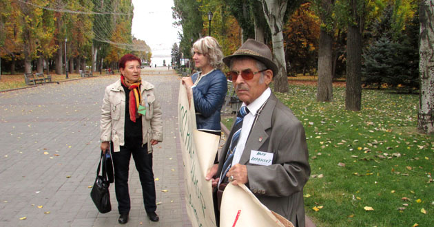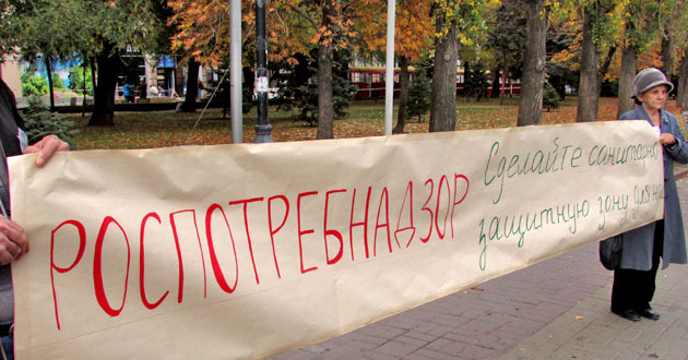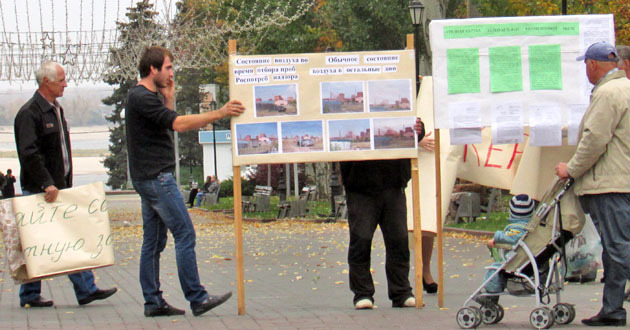 Пикет с требованием к надзорным органам приостановить работу керамзитных заводов в поселке Средняя Ахтуба. Волгоград, 17 октября 2014 г. Фоторепортаж корреспондента "Кавказского узла" Вячеслава Ященко