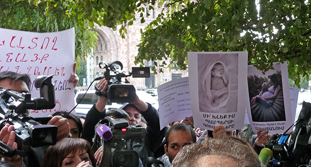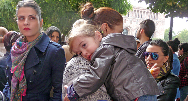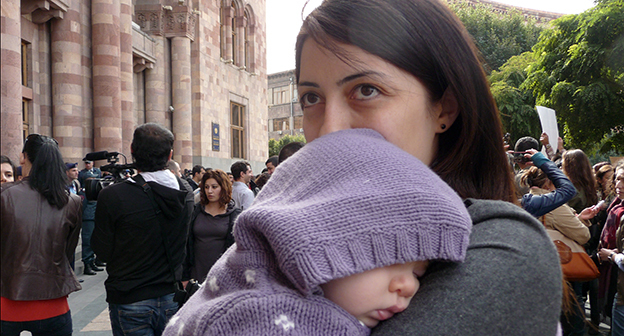 Fкция против новой системы распределения пособий матерям. Ереван, 23 октября 2014. Фоторепортаж корреспондента "Кавказского узла" Армине Мартиросян