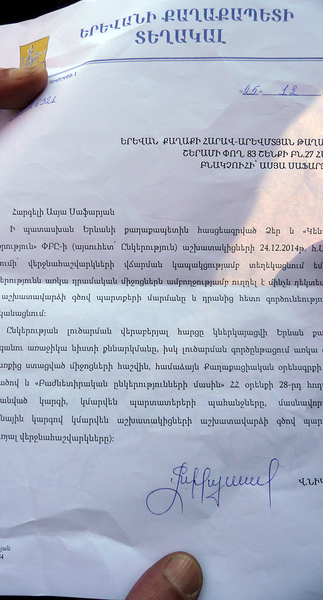 Акция протеста работников компании "Чистота–Центр" в Ереване. 26 декабря 2014 год. Фоторепортаж корреспондента "Кавказского узла" Армине Мартиросян