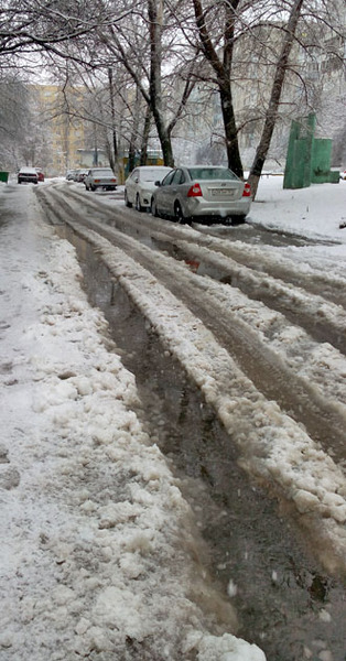 Мокрый снег на тротуарах города