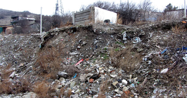 Крупная свалка в русле ручья в Восточном районе Новороссийска. Январь 2015 г. Фото Анны Грицевич для «Кавказского узла»