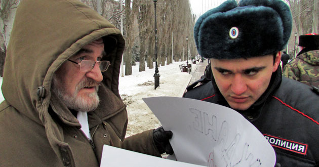 Пикет против войны на Украине. Волгоград, 31 января 2015 г. Фоторепортаж корреспондента "Кавказского узла" Вячеслава Ященко