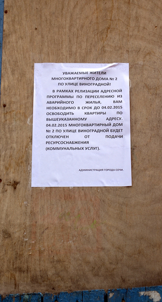 Мэрия Сочи требует от жильцов благоустроенного дома переехать в не сданные в эксплуатацию дома. Фоторепортаж корреспондента "Кавказского узла" Светланы Кравченко