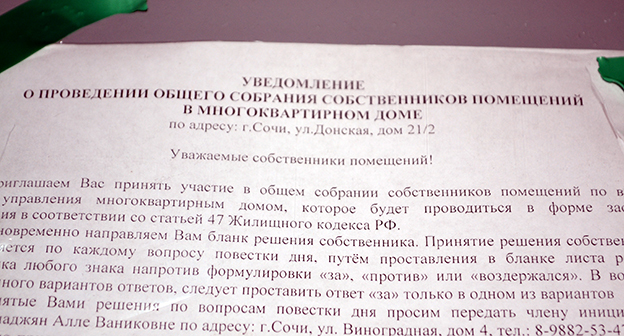 Мэрия Сочи требует от жильцов благоустроенного дома переехать в дома, не сданные в эксплуатацию. Фоторепортаж корреспондента "Кавказского узла" Светланы Кравченко