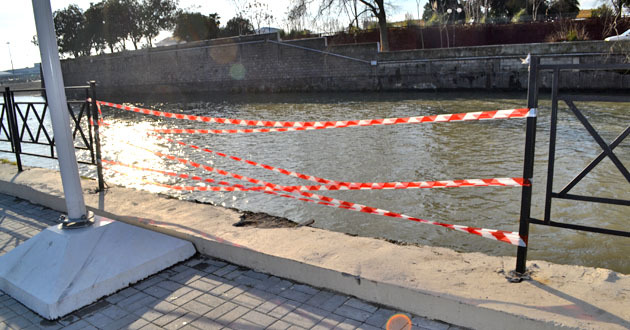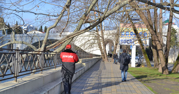Поврежденное ограждение на набережной куда упала машина. Сочи, 6 февраля 2015 г. Фоторепортаж корреспондента "Кавказского узла" Светланы Кравченко