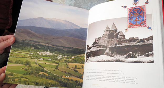 В альбоме представлены фотографии исторических и архитектурных памятников, хачкаров (камни с изображением креста), национальных костюмов и атрибутов, остатки армянских церквей и церковных рукописей, а также всех армянских сел, жители которых были убиты во время Геноцида. Нагорный Карабах, город Шуши. 6 февраля 2015 год