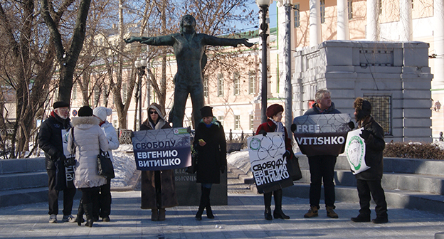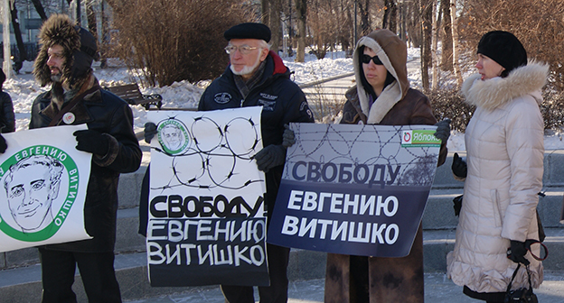 Пикет в поддержку эколога Евгения Витишко в Москве. Фоторепортаж корреспондента "Кавказского узла" Вячеслава Ферапошкина. 18 февраля 2015 г.