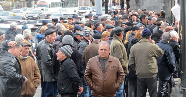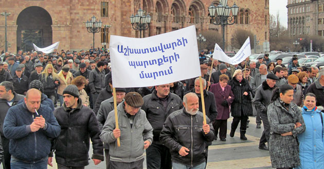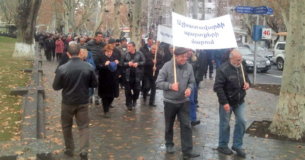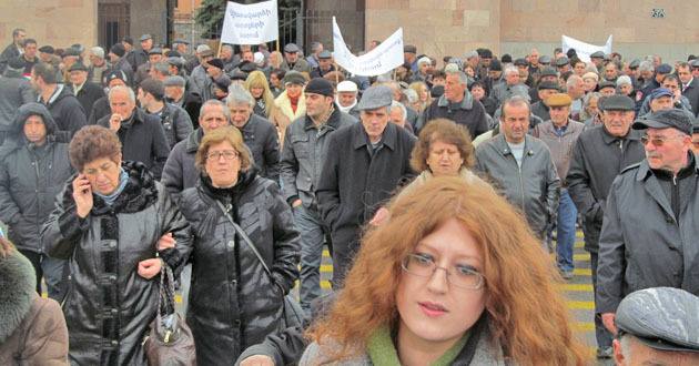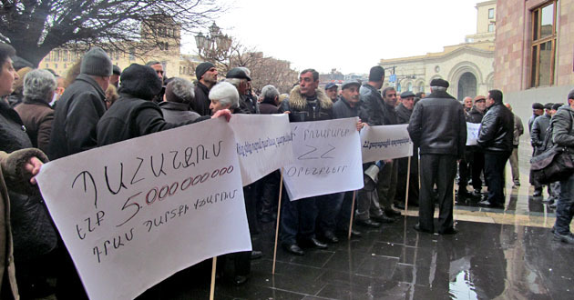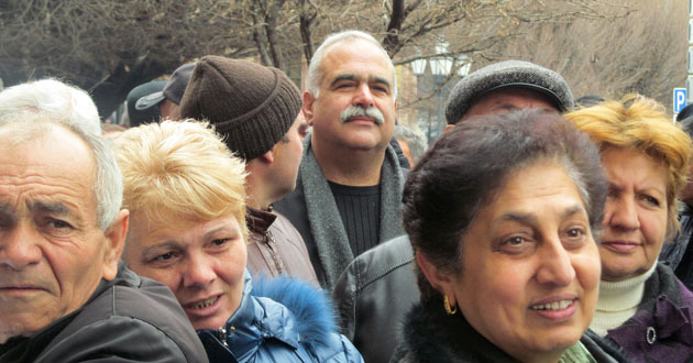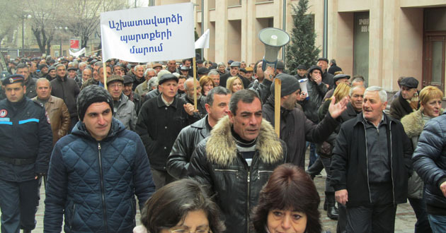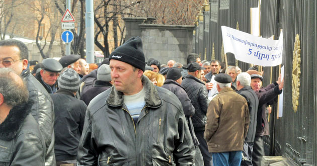 Акция бывших сотрудников "Наирит" с требованием погасить долги по зарплате. Ереван, 5 марта 2015 г. Фото Тиграна Петросяна для "Кавказского узла"