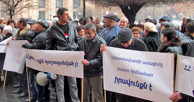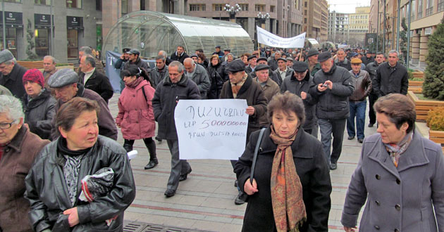 Акция бывших сотрудников завода "Наирит" с требованием погасить долги по зарплате. Ереван, 5 марта 2015 г. Фоторепортаж корреспондента "Кавказского узла" Тиграна Петросяна