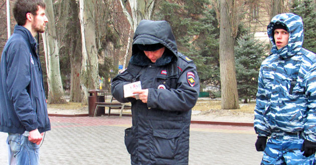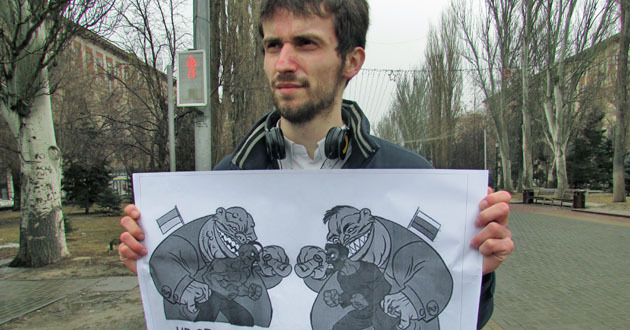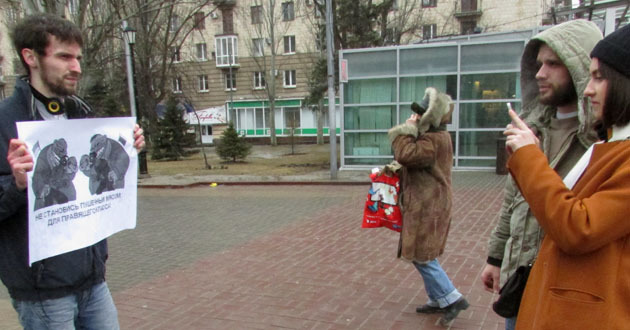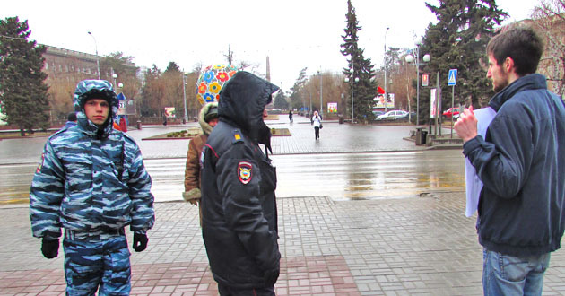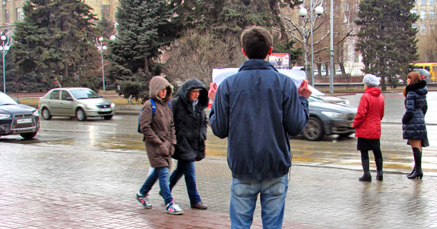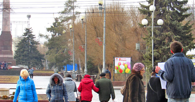 Одиночный пикет против войны на Украине провел Юрий Троценко. Волгоград, 7 марта 2015 г. Фоторепортаж корреспондента «Кавказского узла» Вячеслава Ященко