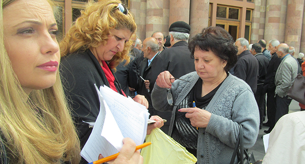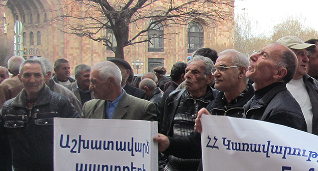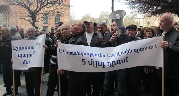 Очередная акция протеста экс-сотрудники завода «Наирит», Ереван, 2 апреля 2015 год. Фоторепортаж корреспондента "Кавказского узла" Тиграна Петросяна.