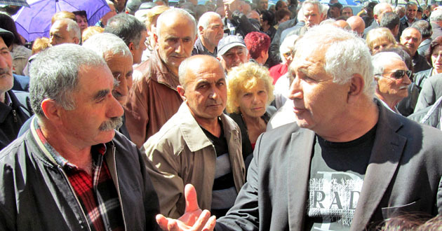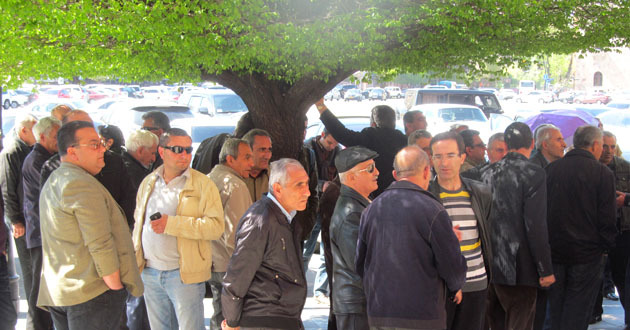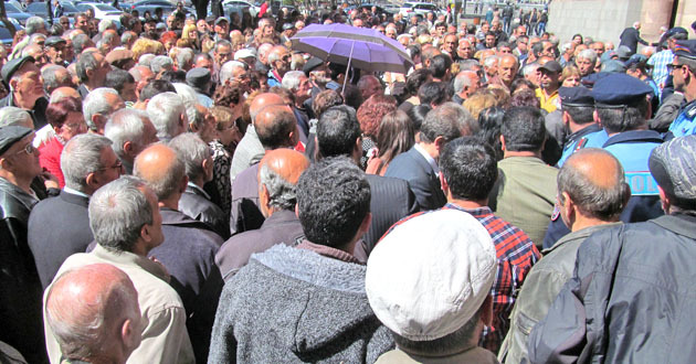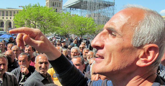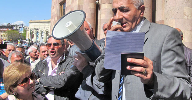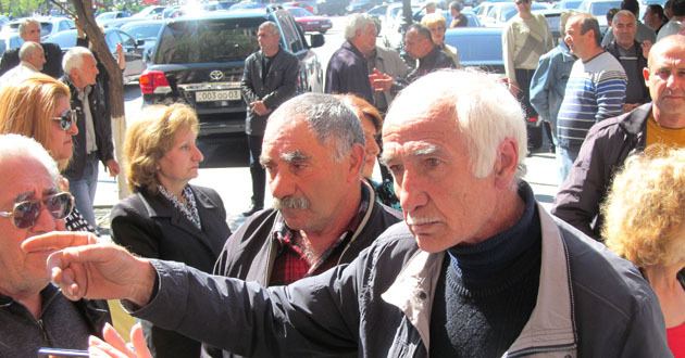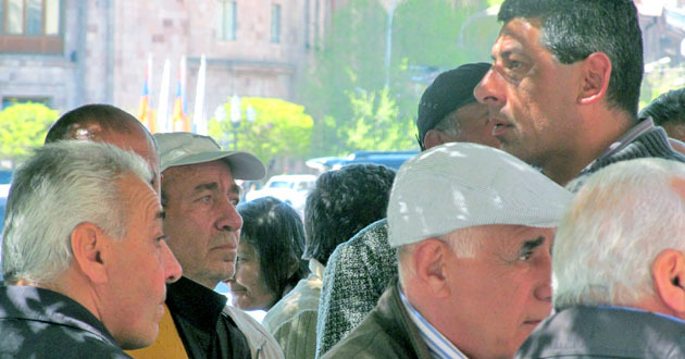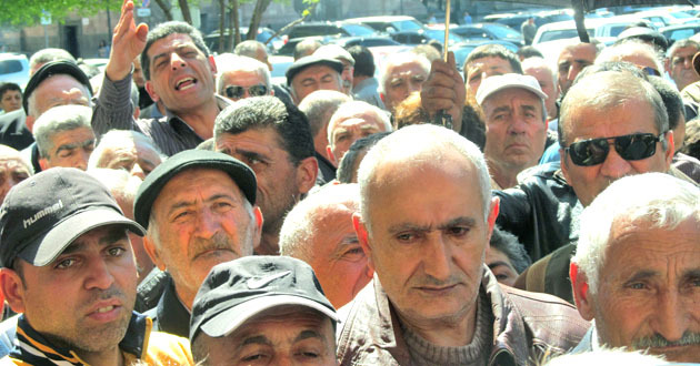Экс-сотрудники завода «Наирит» протестуют перед зданием правительства Армении. Ереван, 17 апреля 2015 г. Фоторепортаж корреспондента "Кавказского узла" Тиграна Петросяна