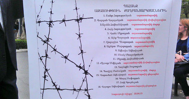 Хачик Аветисян продолжил голодовку на площади Свободы в Ереване. 28 апреля 2015 г. Фоторепортаж корреспондента "Кавказского узла" Тиграна Петросяна