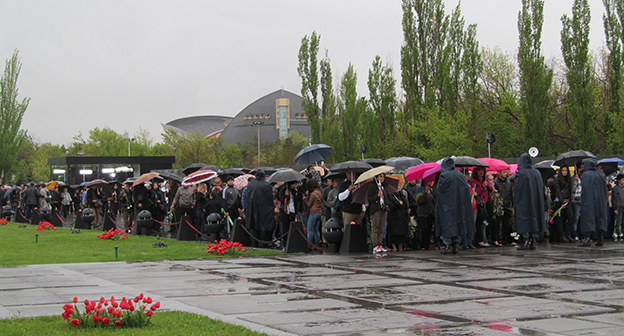 «100-летие памяти жертв Геноцида: мемориальный комплекс Цицернакаберд». Ереван, 24 апреля 2015 год. Фоторепортаж корреспондента "Кавказского узла" Тиграна Петросяна