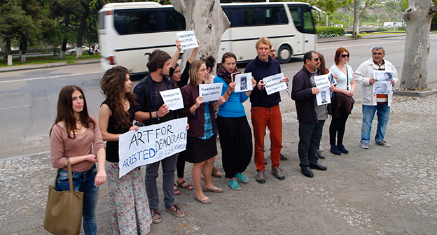 Митинг в поддержку политзаключенных Азербайджана. 4 мая 2015 года, Тбилиси. Фоторепортаж корреспондента "Кавказского узла" Беслана Кмузова