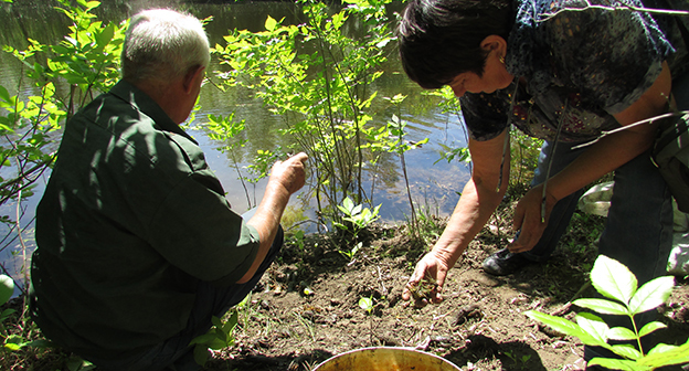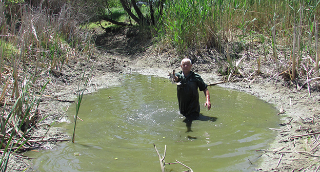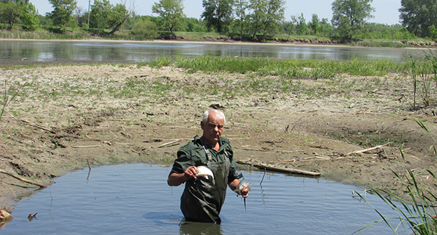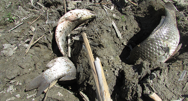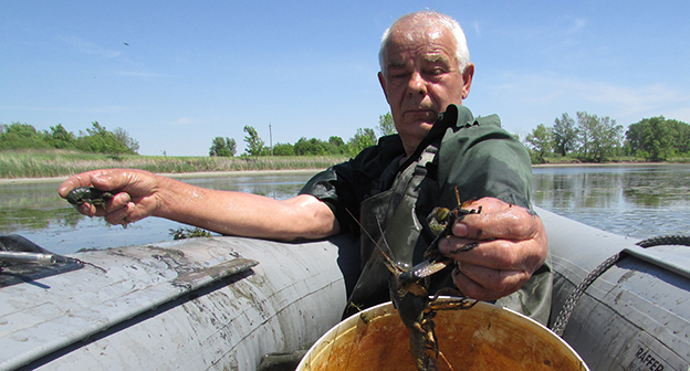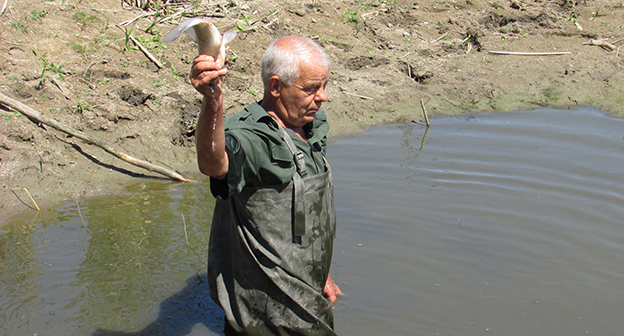 Пенсионеры хутора Лещев Ленинского района Волгоградской области переселяют рыбу и раков из пересыхающего озера в обводненный ерик. Фоторепортаж корреспондента "Кавказского узла" Вячеслава Ященко