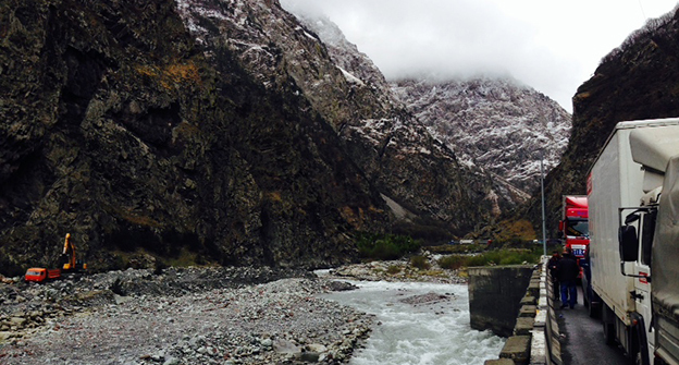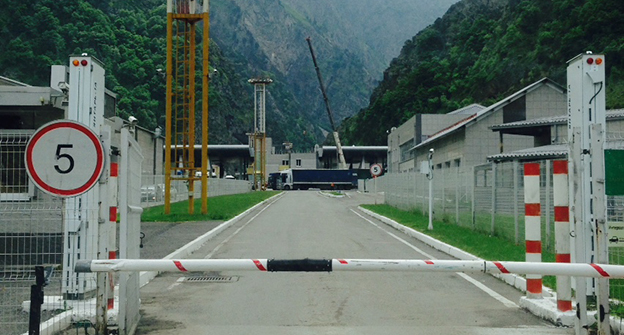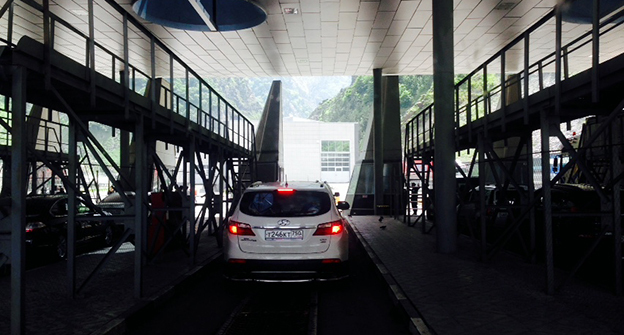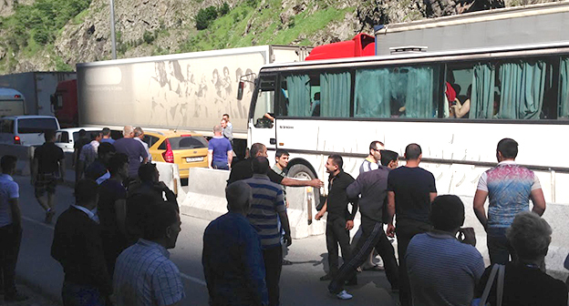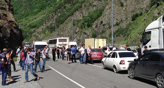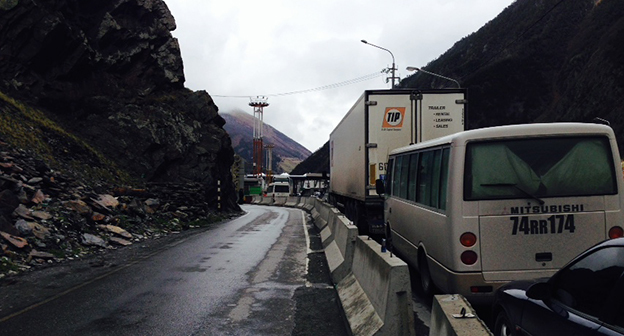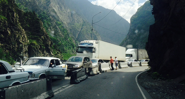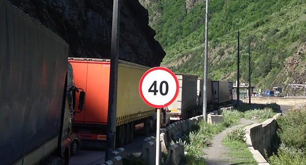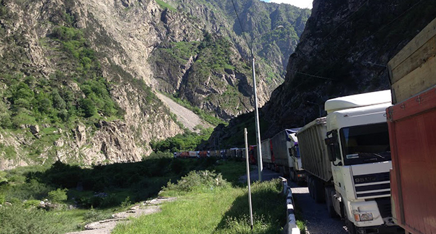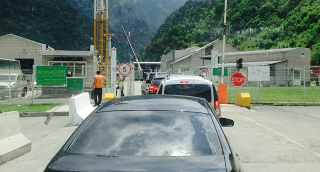 Скопление автомобилей на КПП "Верхний Ларс" . 8 июня 2015 год. Фоторепортаж Ахмеда Альдебирова для "Кавказского узла"