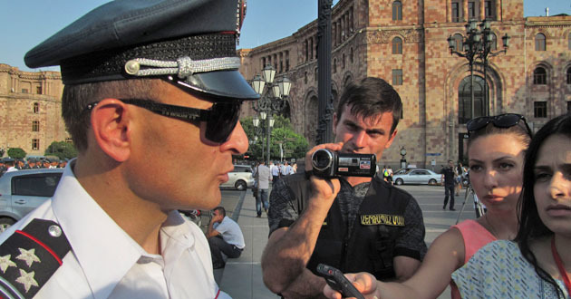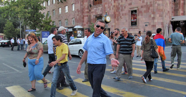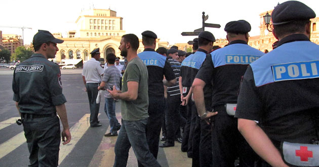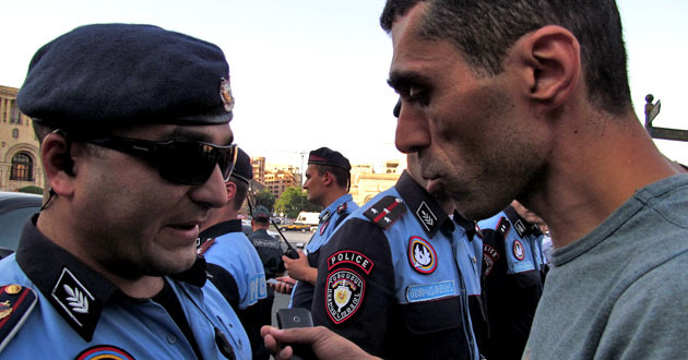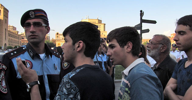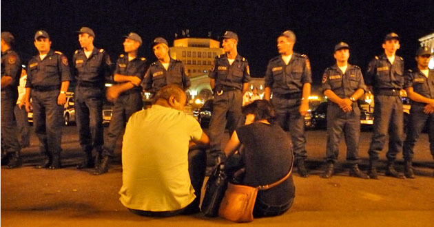 Сидячий пикет на площади Республики против подорожания электроэнергии. Ереван, 30 июля 2015 года. Фоторепортаж корреспондента "Кавказского узла" Армине Мартиросян