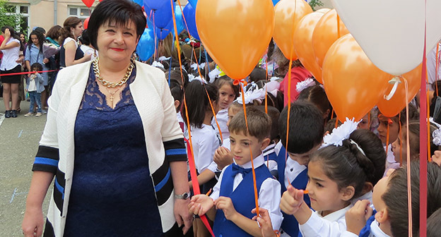 Первый звонок в школе № 7 в Степанакерте. Нагорный Карабах.. Фоторепортаж корреспондента "Кавказского узла" Алвард Григорян