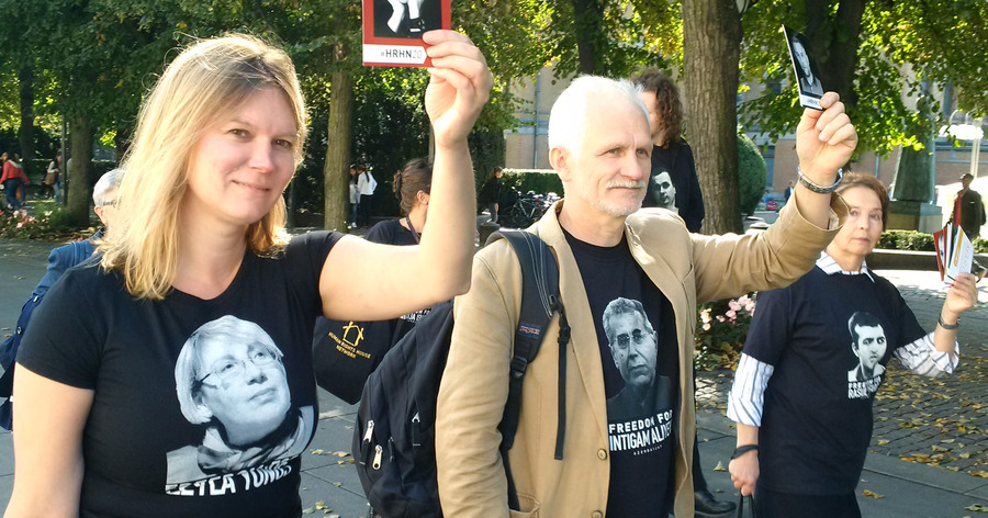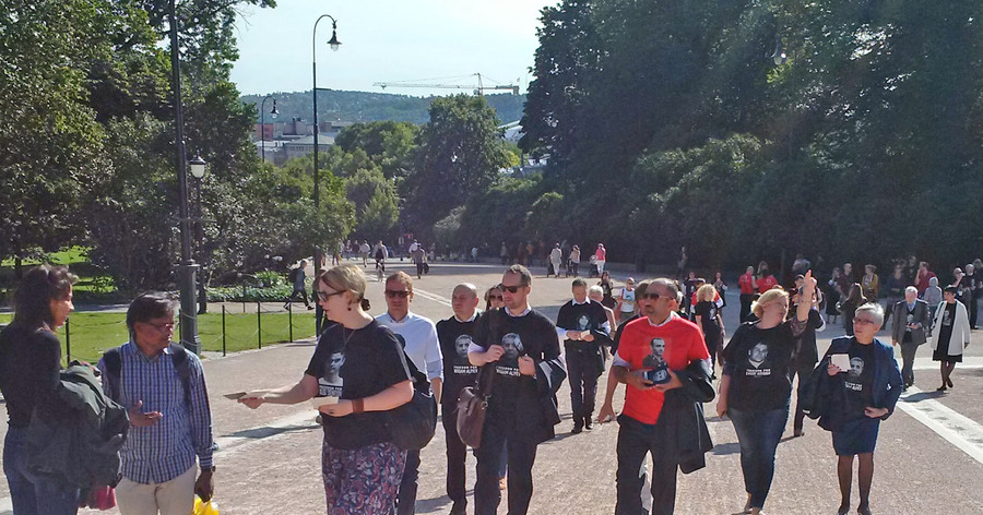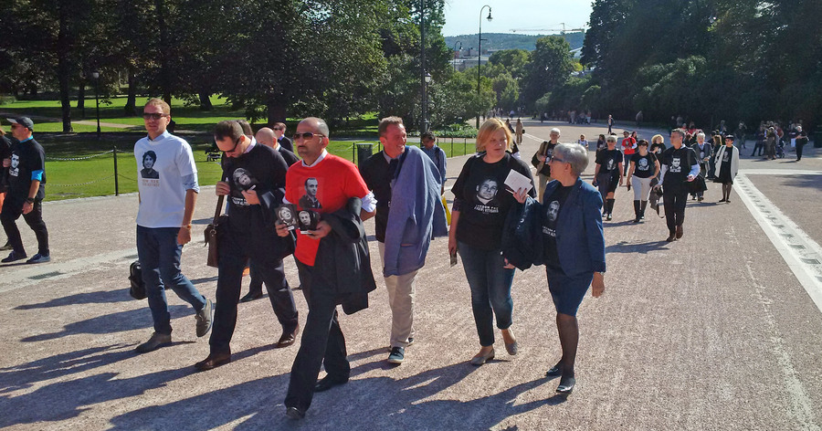 Сеть Домов Прав Человека сегодня, в свой 20-летний юбилей, организовала марш солидарности с правозащитниками Азербайджана, России и Беларуси. Около 80 активистов из 20 стран прошли в Осло от здания Парламента, до офиса Министерства Иностранных дел, где представитель МИДа встретился с ними и выслушал призывы усилить поддержку правозащитников. Активисты также напомнили ему про политических заключенных, которые находятся в тюрьмах Азербайджана и России, вручили открытки с портретами Евгения Витишко, Тимура Куашева, Интигама Алиева, Хадиджи Исмайловой, Лейлы и Арифа Юнус. Группа продолжила движение далее до Дома Литературы, где состоялась дискуссия о будущем борьбы за права человека.Фото Григория Шведова для «Кавказского узла»