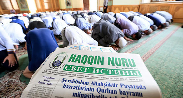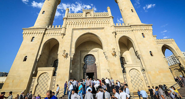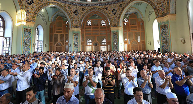 Курбан-байрам в Баку. 23 сентября 2015 года. Сегодня с утра в мечетях Азербайджана были совершены обряды праздничного намаза. Наиболее массовыми стали церемонии в бакинских мечетях “Аждарбей” и “Тезепир”, где в праздничном намазе приняли участие несколько тысяч человек.