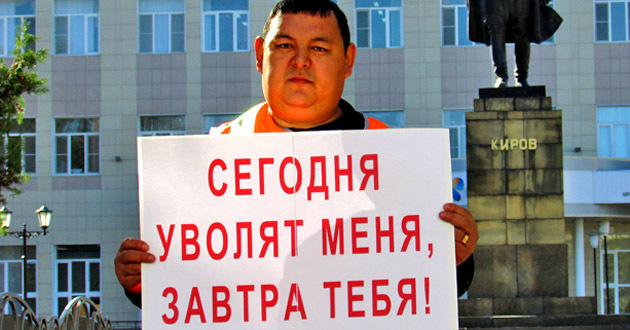 Во время пикетов сотрудники предприятия держали в руках плакаты: "Кто накормит наших детей?", "Нет работы - нет пенсии", "Нет увольнениям работников", "Нет работы – нет налогов" и другие