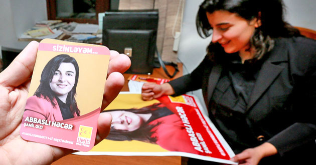 Кандидат в депутаты по 41-му Сумгаитскому второму округу, представитель оппозиционной партии "УМИД" Хаджар Аббаслы