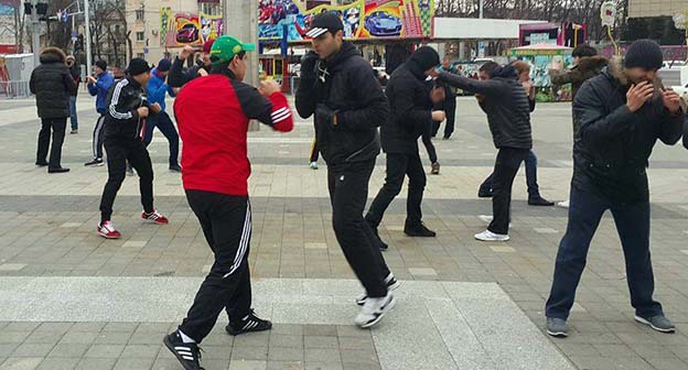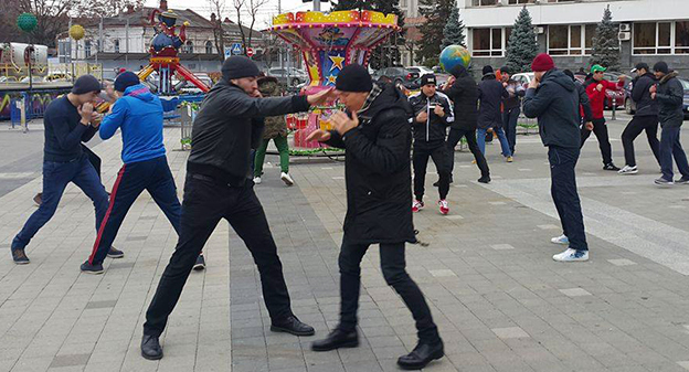 Боксеры-любители провели протестную тренировку перед мэрией Краснодара. Фоторепортаж корреспондента "Кавказского узла" Алексея Мандригели