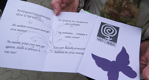 Общественная организация “Женский Ресурсный Центр” в Нагорном Карабахе считает, что из-за традиций многие женщины и девушки не обращаются в полицию, и даже не хотят поднимать вопрос гендерного неравенства, так как стыдятся осуждения со стороны общества. Активистки организации прошли по центральному проспекту Степанакерта и раздали женщинам листовки, где был напечатан призыв лучше знать свои права и бороться за них.
