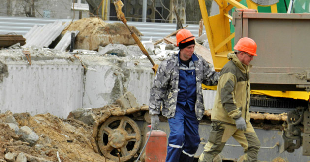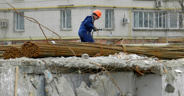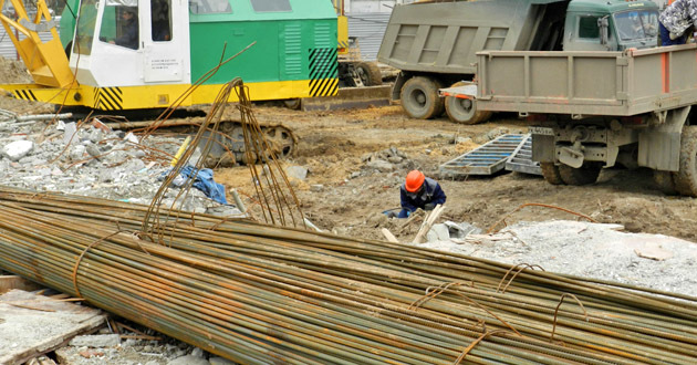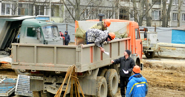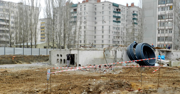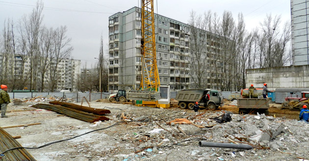 В Волгограде на месте строительства нового дома на Космонавтов завершена бетонная подготовка. 29 марта 2016 года. Фоторепортаж корреспондента "Кавказского узла" Татьяны Филимоновой
