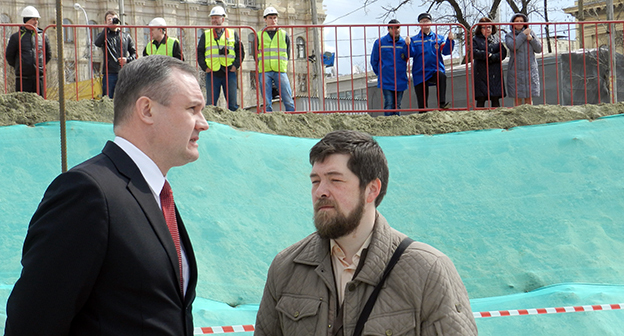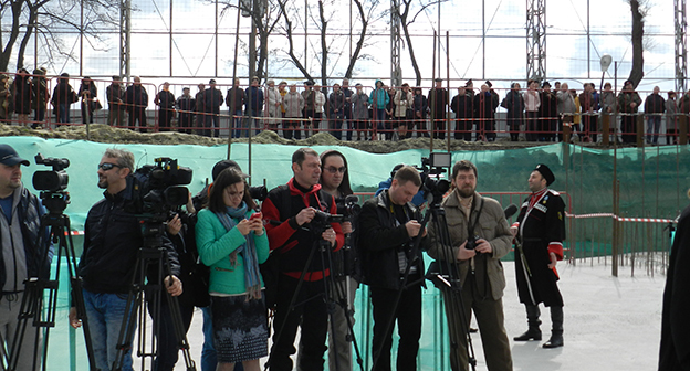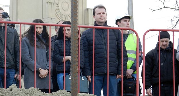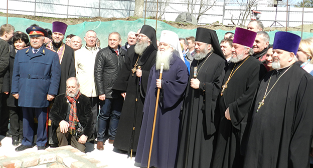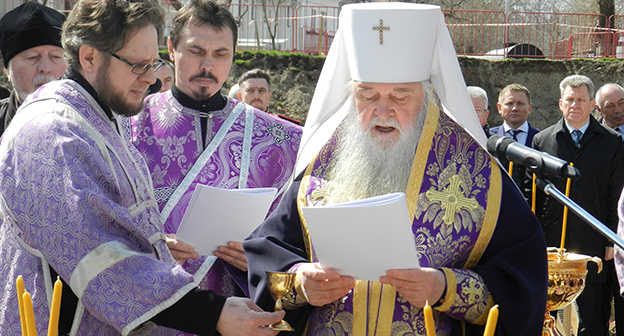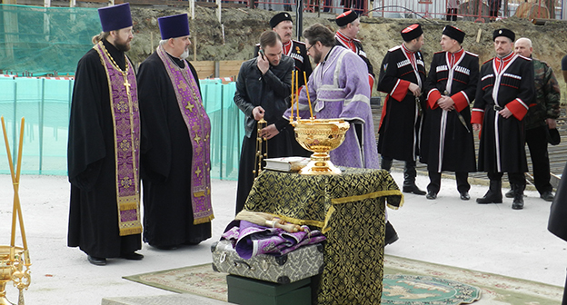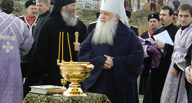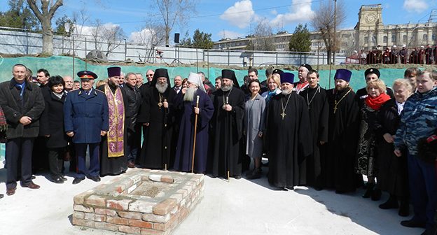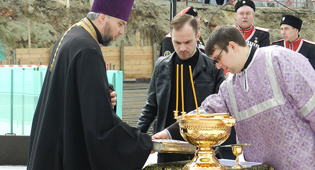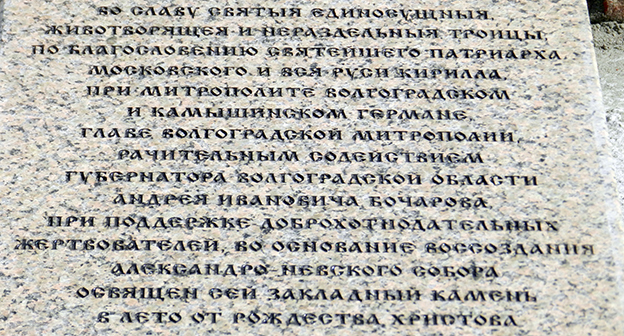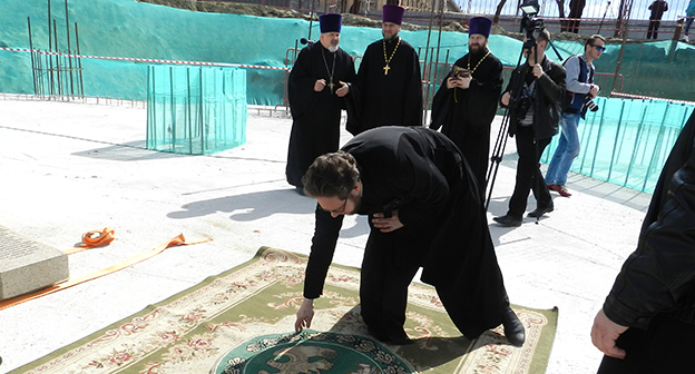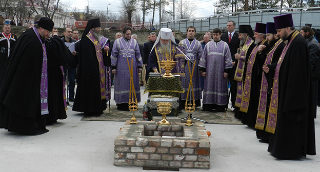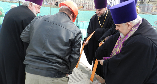 Закладка первого камня в фундамент собора Александра Невского в Волгограде на площади Павших борцов. Волгоград, 5 апреля 2016 года. Фоторепортаж корреспондента "Кавказского узла" Татьяны Филимоновой