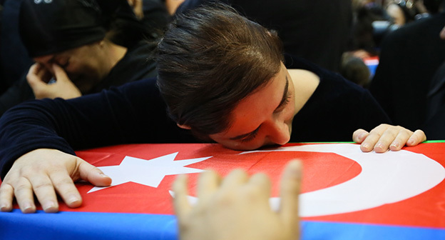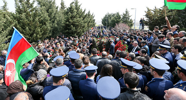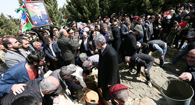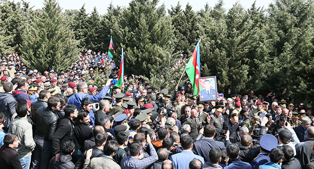 Церемония прощания с четырьмя азербайджанскими офицерами, погибшими в ходе боев в Нагорном Карабахе 11.04.2016. Фото р епортаж корреспондента "Кавказского узла" Азиза Каримова