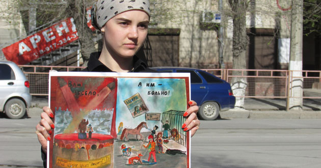 Акция "За российский цирк без жестокости". Волгоград, 17 апреля 2016 г. Фоторепортаж корреспондента "Кавказского узла" Вячеслава Ященко