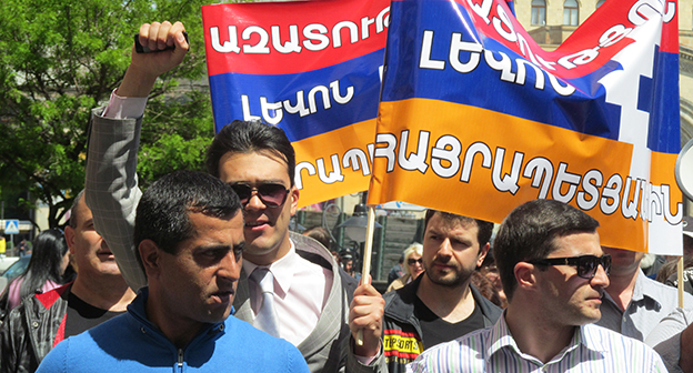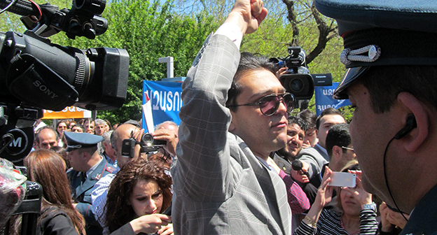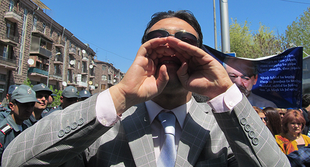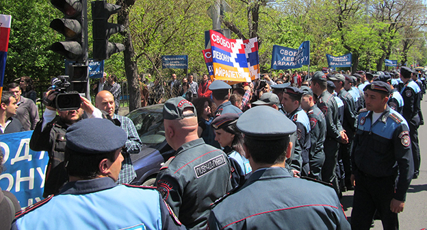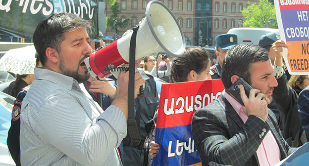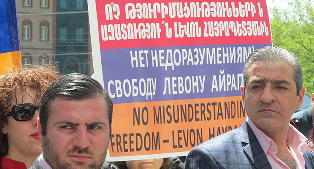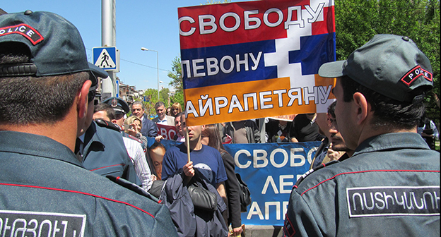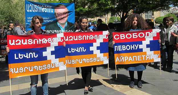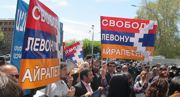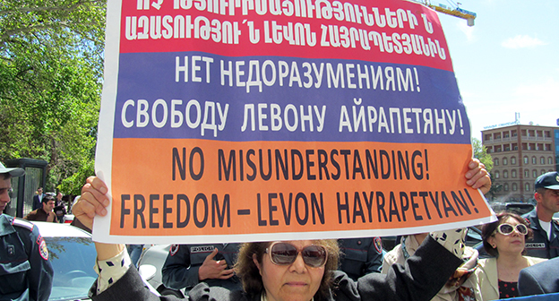 Активисты в Ереване требуют освободить Левона Айрапетяна. 19 апреля 2016 года. Фоторепортаж корреспондента "Кавказского узла" Тиграна Петросяна