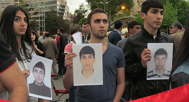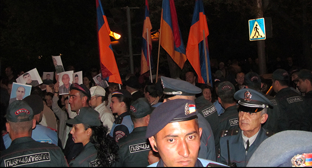 Коктейл Молотова: символичный подарок российским дипломатам. Акция в Ереване 21 апреля 2016 года. Фоторепортаж корреспондента "Кавказского узла" Тиграна Петросяна
