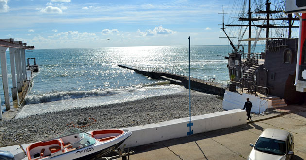 Буна в районе пляжа «Солнечный» в период шторма становится опасной для прогулок, так как волной может смыть гуляющих в море