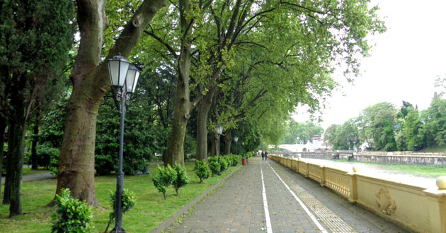 Платановая аллея в сквере на улице Конституции стала терять листву в мае месяце